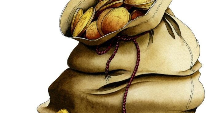 Он кликнул одного из своих казначеев и приказал наполнить деньгами мешок нищего.