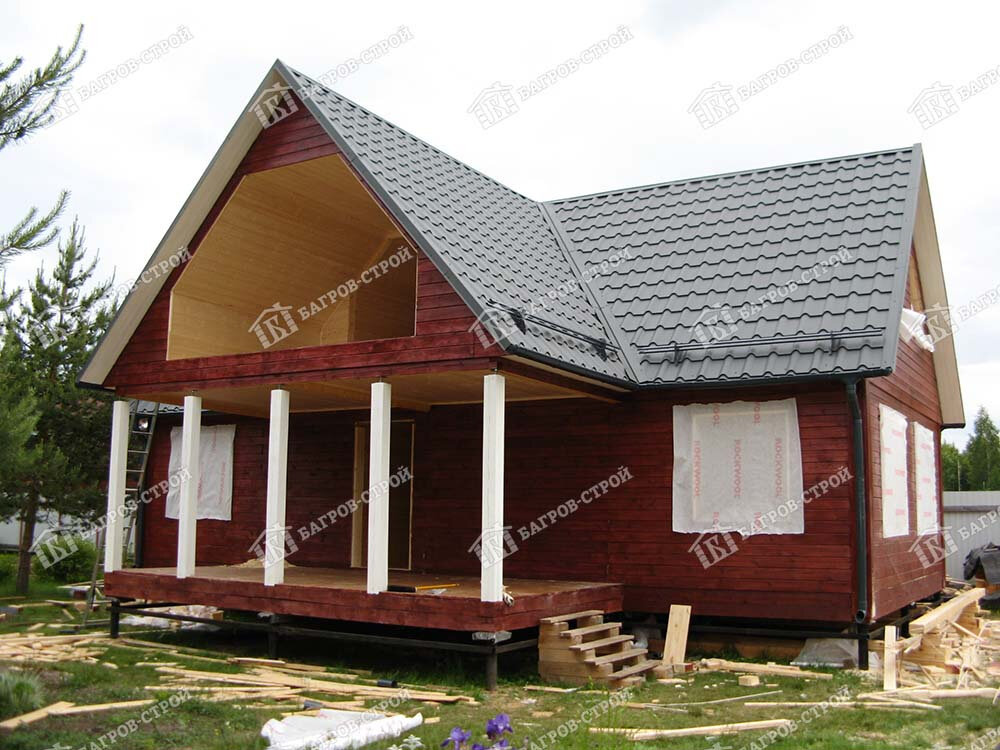 Герман — большой, двухэтажный дом из бруса, общих размеров 9х12м., с балконом и террасой. Сруб дома, 6х12м, выполняется из профилированного бруса, 2-й этаж – каркасный (мансарда) с утеплением. Планировкой предусмотрены 3 просторных помещения на 1-м этаже, 3 комнаты на 2-м этаже, а также, балкон и терраса с ограждением перилами и балясинами. При входе в дом устанавливаются ступени.