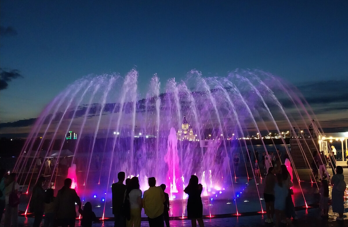 За своими дачными делами я пропустил, оказывается, момент, когда у нас в городе установили цветомузыкальный фонтан на Нижневолжской набережной.