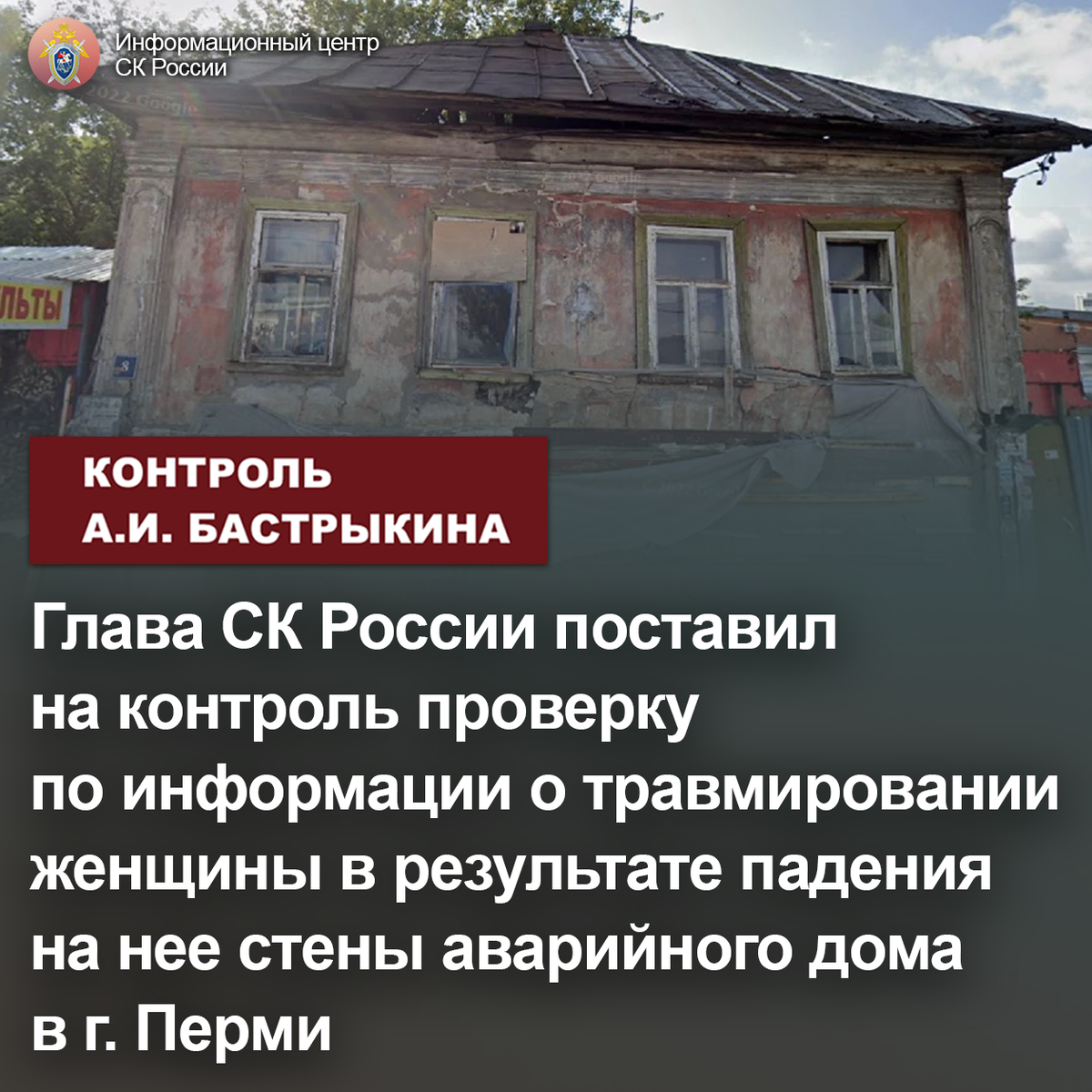 Глава СК России поставил на контроль проверку по информации о травмировании женщины в результате падения на нее стены аварийного дома в г. Перми