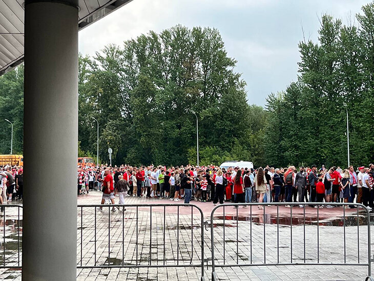 Очевидно, Fan ID мешает заходить быстро. На ЦСКА – «Зенит», например, висла электроника: люди смотрели футбол на телефонах и не могли зайти до 20-й минуты, хотя было меньше 10 тысяч человек. Тут в три раза больше народу, очереди до получаса – последние болельщики забегали на арену в середине первого тайма.