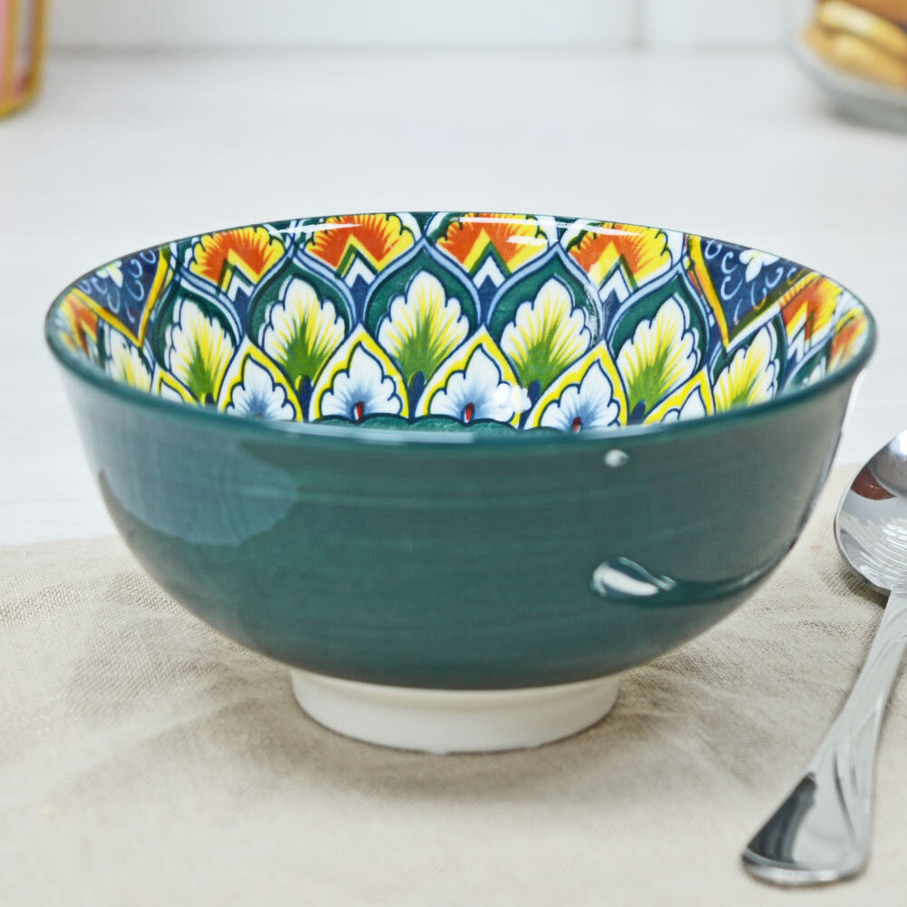 Не знаю, как вы, а я люблю орнаменты в посуде. Но проблема мне видится в том, что яркие насыщенные цвета вызывают повышенный аппетит. Во всяком случае, у меня )). Из салатника, который наверху, я точно съем салата больше, чем из того, что внизу ))). Пятнышки у меня вообще аппетит не вызывают. С таким салатником можно смело садиться на диету )). Но мне у него очень понравилась фактура снаружи. Поэтому и сфотографировала.