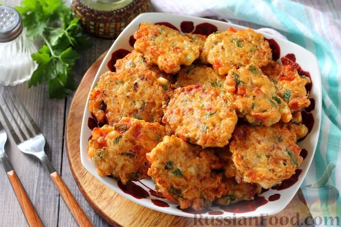 Куриные оладушки-котлетки. Гречка с фаршем и овощами. Овощное рагу с баклажанами, брокколи и перцем. Суп со свининой и горошком. Салат из помидоров, лука и оливок. Гречка с фаршем, кабачками, помидорами и сладким перцем готовится на сковороде. Каждый компонент блюда даёт свой вкус и аромат, при этом все они прекрасно сочетаются. Гречка насыщается мясными и овощными соками, получается очень вкусной и сытной. Овощное рагу с баклажанами, брокколи, болгарским перцем и фасолью получается очень питательным за счёт фасоли. Кроме того, использование консервированной фасоли существенно сокращает время приготовления рагу. Брокколи и разноцветный перец делают блюдо ярче. Суп со свининой, овощами и консервированным горошком готовится недолго. Бульон для этого супа варить не нужно. Мясо предварительно обжаривается и тушится, а в это время подготавливаются овощи. Затем свинина соединяется с овощами и всё заливается водой. В конце добавляется консервированный горошек, и чеснок для аромата. Лёгкий са