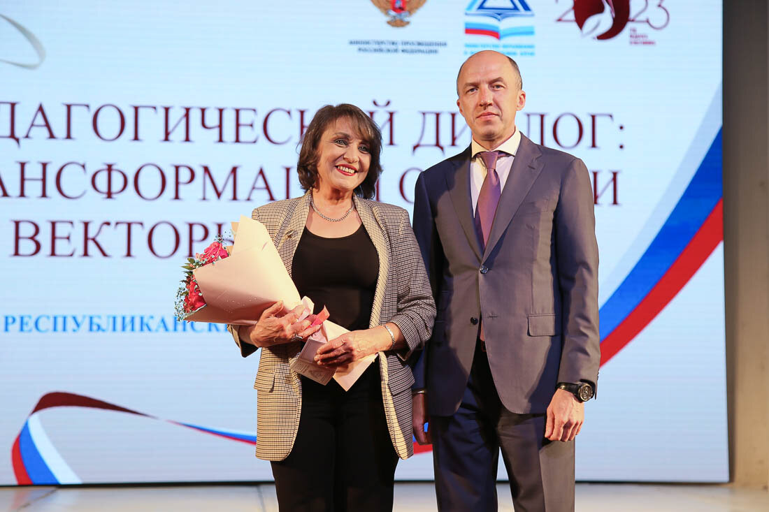 Звания «Почётный работник сферы образования Российской Федерации» были удостоены преподаватель Горно-Алтайского педагогического колледжа Надежда Володина, воспитатель детского сада «Солнышко» филиала Акташской средней общеобразовательной школы им. Станислава Мохова Гайни Нугуманова, учитель музыки Усть-Канской средней общеобразовательной школы имени Ч.К.Кыдрашева Татьяна Теркишева, учитель начальных классов Лицея №6 им. И.З. Шуклина г. Горно-Алтайска Ирина Тюнина и учитель истории и обществознания Бийкинской средней общеобразовательной школы Галина Ялбачева.