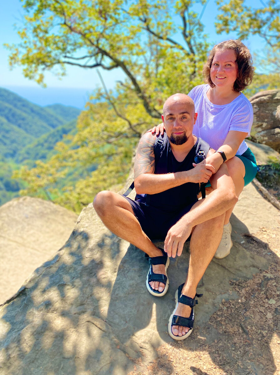 Мы же с Женей остались одни на смотровой, с которой открывается чудесный вид на соседние горы и море, а я решила сделать пару экстремальных фотографий и залезла на скалу, которая возвышается прямо над обрывом.