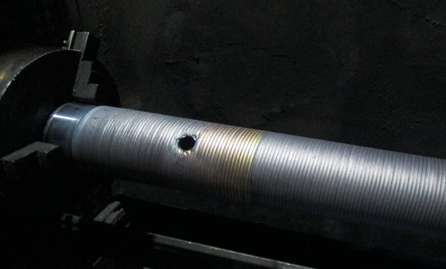 Установка для наплавки замков бурильных труб. Предназначена для автоматической электродуговой наплавки под слоем флюса с возможностью наплавки в защитных газах и самозащитными порошковыми проволоками бурильных труб диаметром 60–127 и 127–299 мм. В установке реализованы режимы наплавки с автоматическим пошаговым перекрытием валиков, а также с перекрытием по спирали.
