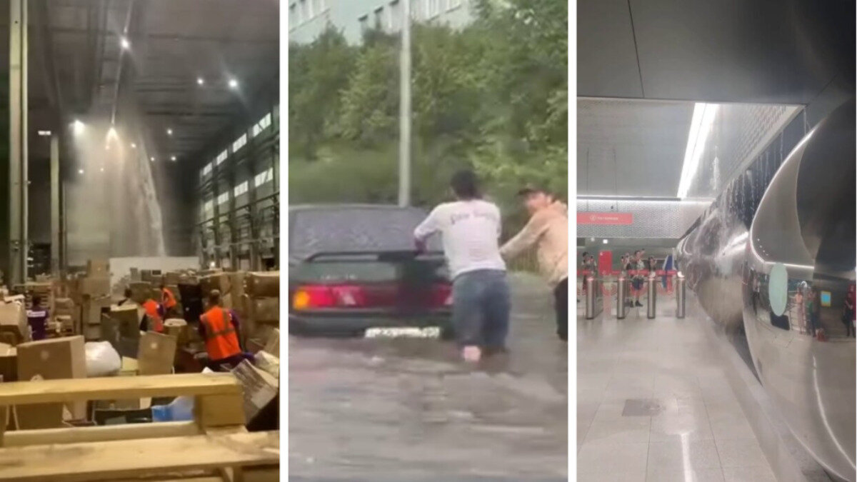В Москве мощный ливень пробил крышу и затопил концертный зал VK Stadium и склад Wildberries — Видео