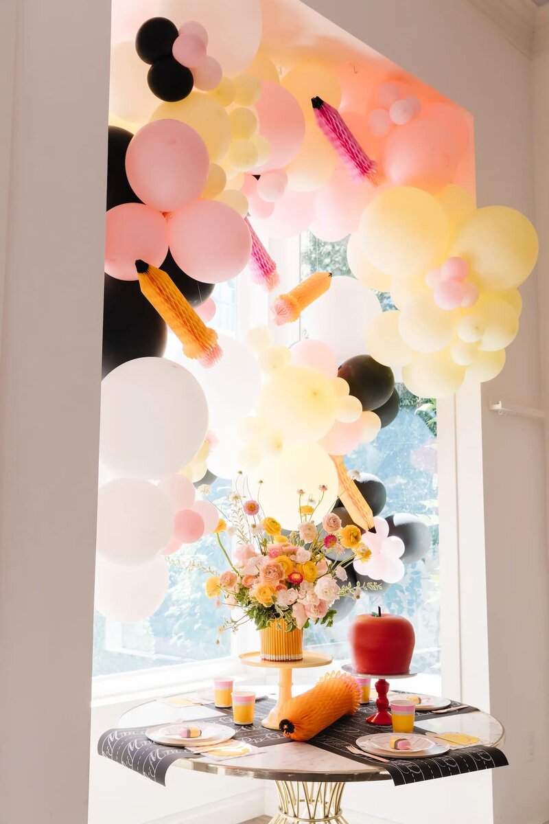 Если вы планируете устроить небольшой домашний праздник, то ловите наши советы и хитрости! Для начала вам нужно подумать над украшением пространства. У нас вы найдёте огромное количество декора, а мы поможем с выбором. Рекомендуем остановиться на классической оранжево-красной гамме — она ассоциируется и со школой, и с осенью. Кстати, на фото вы видите одно из самых простых тематических украшений — ваза, стилизованная карандашами! Для её создания вам подойдёт любая жестяная или пластиковая банка. В качестве угощений подойдут самые простые десерты, но тематические станут отличным украшением вашего стола! Печеньки в форме каранадашей и тетрадных листов, торт-яблоко или просто красные яблоки, украшающие стол, кейк-попсы в виде глобусов — кондитеры вас не разочаруют, стоит только предложить им тематику. Для сервировки можно использовать тематическую осеннююю посуду или просто взять яркие универсальные тарелки и стаканы, а стол украсить распечатками на школьную тематику! А ещё для декора мо