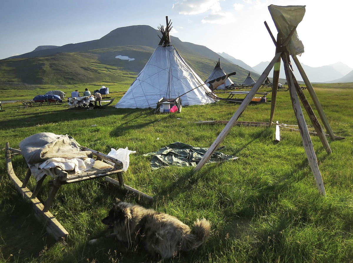 Хотя ехали мы именно сюда, организаторам с туристического портала VisitYamal так и не удалось созвониться с хозяевами напрямую. Зато дозвонились они до соседей, обещавших отправить гонца... и сдержавших бы своё обещание, если бы их стадо не атаковали волки. Нескольких оленей серые порезали, остальных - спугнули за перевал, куда срочно пришлось каслать (делать перекочёвку) и людям. Конечно, в те дни им было не до просьб праздных гостей, а потому наш визит начался с переговоров, успеха коих никто не обещал.