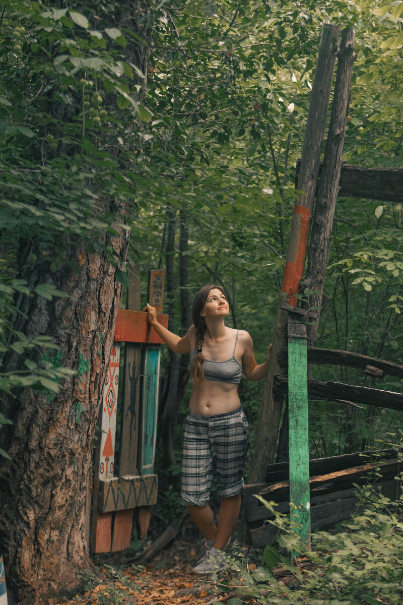 Как то, гуляя по лесу недалеко от кемпинга где остановились, наткнулись на гусеничный трактор. Место само по себе было интересное. Тропинки, местами какие-то заборчики разукрашенные, идолы из дерева. А тут такой красивый, железный, мощный прячется в густой зелени. Пройти мимо и не полазить по нему было просто нереально. Изображаем ремонт. Ни один болтик не пострадал. Гаечный ключ вернули нуда где взяли. Трактор на самом деле вполне себе рабочий. К нему ведет дорожка в лесу. Его эксплуатируют хозяева кемпинга.