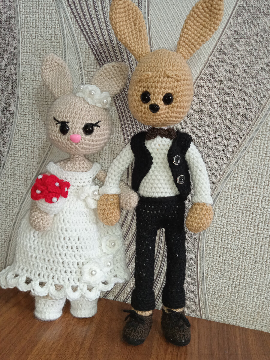 Пришить руки и голову "жениху", сделать правильную утяжку лица. Пришить уши.