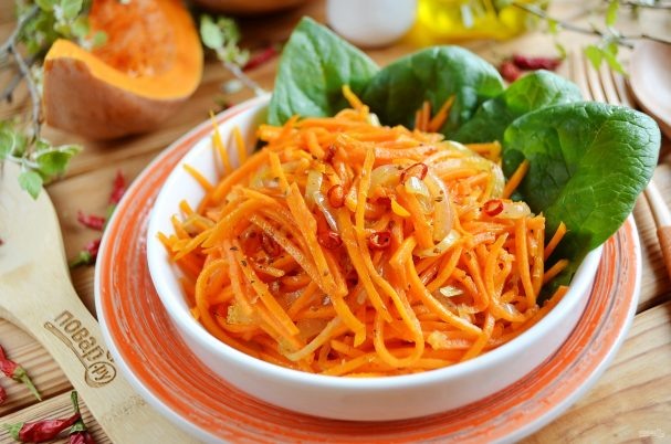 Ингредиенты: Тыква — 400 Грамм Мед — 1 Ст. ложка Лук репчатый — 1 Штук Чеснок — 2 Зубчик Перец острый — 2-3 Штук (или треть обычного перца чили) Масло подсолнечное — 50 Миллилитр Приправа для моркови по-корейски — 2 Чайная ложка Яблочный уксус — 2 Ст. ложка Соль — 0,5 Чайная ложка Приготовление: