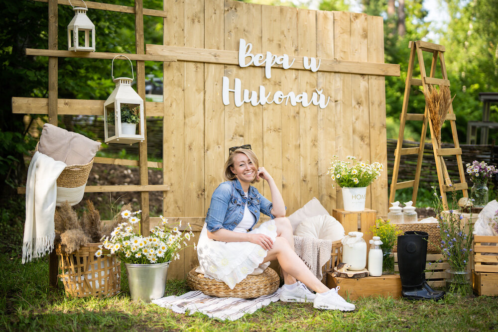 Уже не первый раз мы устраиваем двойной день рождения — так что вы знаете, к кому обращаться! Кажется, что очень сложно развеселить настолько разномастную компанию мальчиков, девочек и родителей, но мы всё продумали. Вере исполнялось 2 годика, её друзья были совсем маленькие, а Коле 8 лет, там уже детишки постарше. Кафе, где мы организовывали эту вечеринку, находится на берегу прудика, здесь красивая природа и милый соломенный заборчик. Это помогло нам выбрать тематику! Мы решили вписать декор в окружающую природу и стиль кафе. Получился вот так очаровательный праздник с ромашками и Жениными сапогами Армани 😁 К сожалению, Верочка простудилась накануне, и на празднике был только второй именинник. Поэтому Коленька и задувал свечи на обоих тортиках. На празднике было почти 60 гостей, в основном мужского пола, поэтому мы подобрали развлечения так, чтобы всем было интересно. Папы и мальчики, например, играли в лазертаг — целых три часа бегали по лесу и стреляли! А мамы предпочли не пачкат