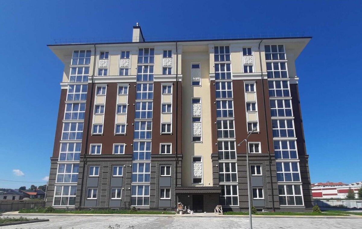 Каждый дом состоит из 72 квартир и 22 хозяйственных кладовых в подвальном этаже.