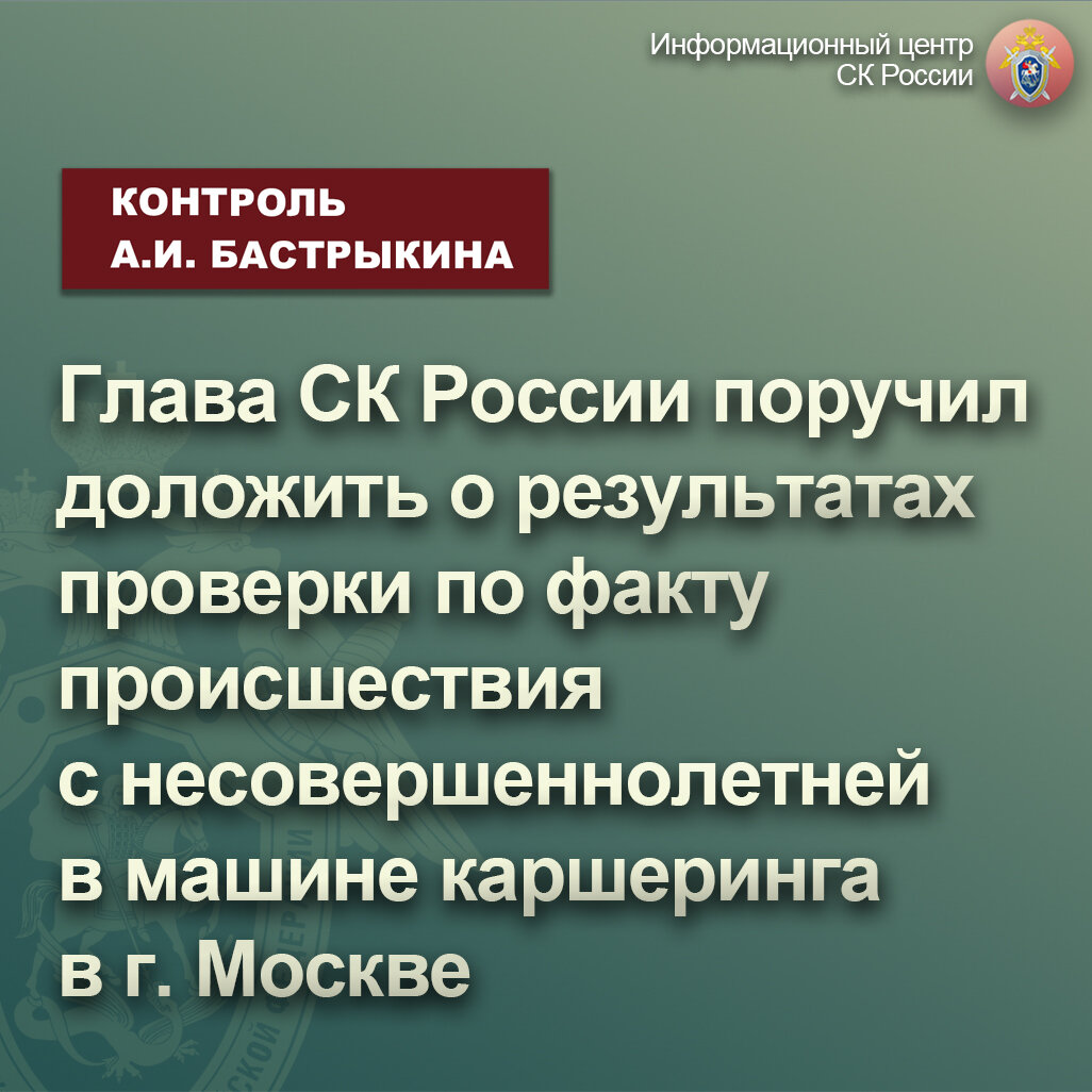 Глава СК России поручил доложить о результатах проверки по факту происшествия с несовершеннолетней в машине каршеринга в г. Москве