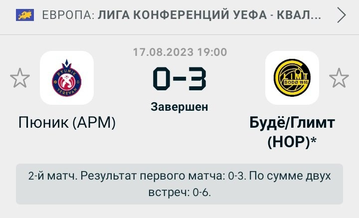 Я подготовила разбор ещё одного матча третьего раунда квалификации Лиги конференций. В ответном поединке встретились Пюник (Армения) и Будё Глимт (Норвегия). В первом матче Норвежцы разгромили соперника со счётом 3:0. В ответном матче казалось, что Армяне дадут бой. Однако Пюник совсем рассыпался. Да понятно, что фаворитом в этой паре был Будё Глимт. Пюник играл дома. Все думали, что клуб из Армении перед вылетом из Еврокубков до следующего сезона хлопнет дверью и даст бой Грозным Норвежцем. Однако всё оказалось гораздо хуже. Пюник просто отвратительно сыграл в обороне и ничего интересного не показал в атаке. В первом тайме Будё Глимт закрыл хозяев в их штрафной площадке. Пюник абсолютно ничего не мог с этим поделать и ему приходилось справляться с давлением со стороны соперника. Вся игра проходила в борьбе за мяч в центре поля или в штрафной площади Армянской команды. Если посмотреть XG у Будё Глимта, то только за первый тайм Норвежцы могли забить два. Однако гости забили лишь однажды