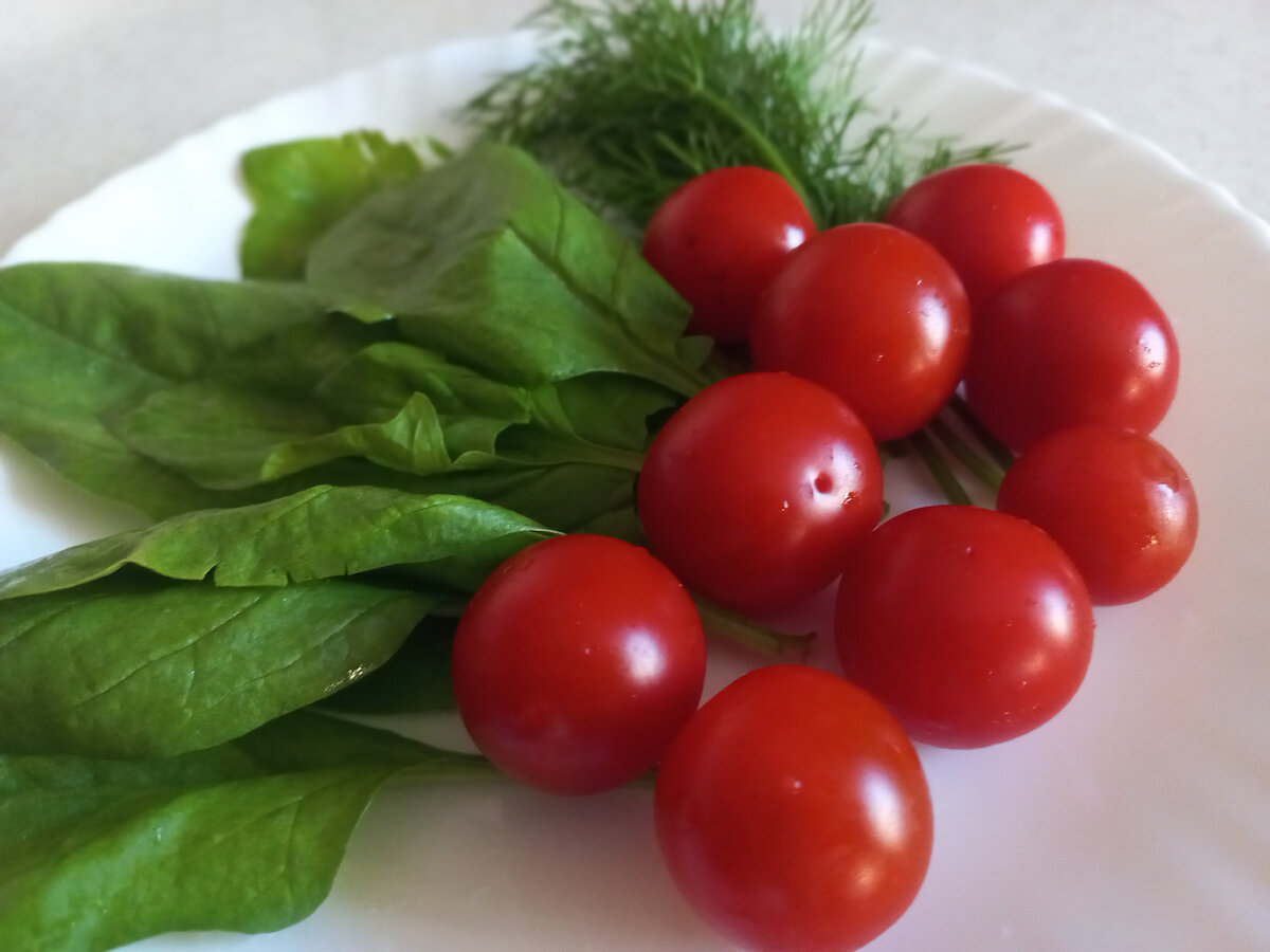 Ошибается тот, кто считает, что похудение основано на поедании только серой овсяной каши. Сегодня мы опровергнем этот неверный стереотип и приготовим на завтрак яркую и аппетитную яичницу. Соответственно к паре сырых яиц добавим: Приготовление. 1. Помидорки-черри разрежем на половинки, уложим их на сковороду и отправим хорошенько прогреться на огне: 2. Как-только они начнут уменьшаться в размере, добавим нарезанные листья шпината и всё вместе слегка посолим. 3. Через две минуты разобьём яйца, слегка посолим теперь их, накроем сковороду крышкой. 4. Как только белок начнёт прихватываться сверху, посыпаем яичницу мелко нарезанным укропом, вновь накрываем сковороду крышкой и выключаем плиту. Через пару минут яичница с помидорами и зеленью готова. Приятного аппетита! Такая яичница очень вкусная и полезная, при её приготовлении не используется масло, что выгодно отличает её от других вариантов. Худеть с ней легко и просто!
