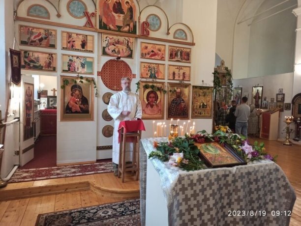 В субботу причащалось около ста человек и в воскресенье чуть поменьше.