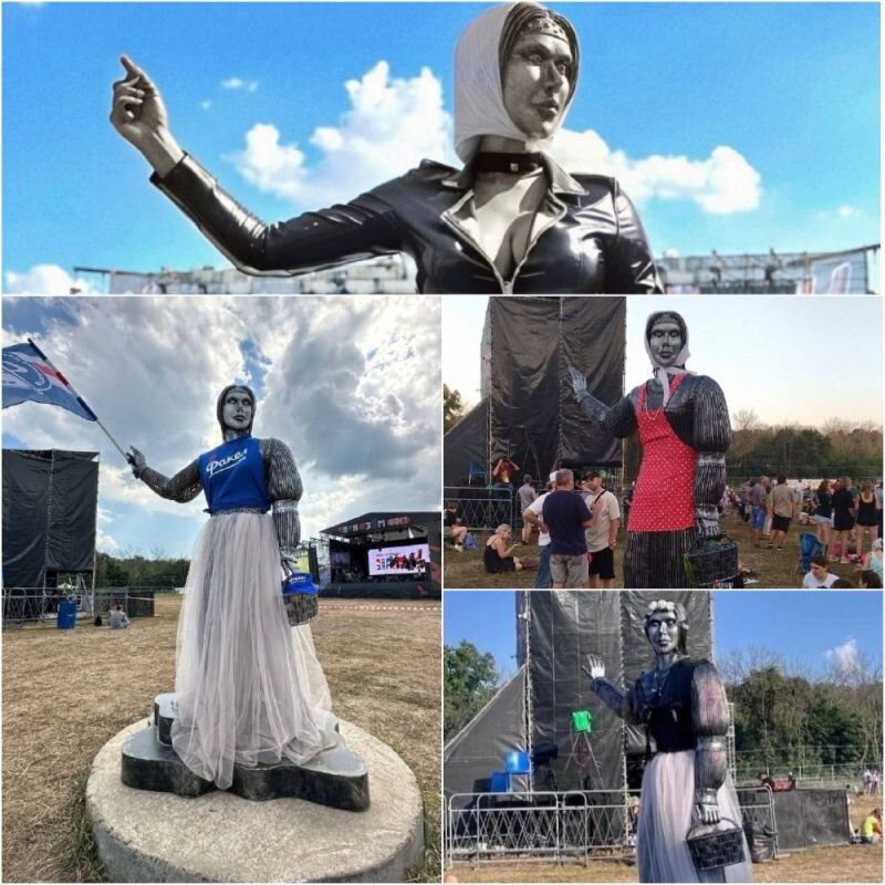 Новый день - новый наряд: так провела известная в стране красавица Аленка рок-фестиваль "Чернозем", который проходил у сити-парка "Град" под Воронежем. Толпы посетителей выстраивались перед скульптурой, чтобы сделать фото на память, а кто-то покреативил и создал еще один образ для нововоронежской красы с использованием нейросети. В первый день, в пятницу, 18 августа, можно было увидеть на Аленке красный фартук. Образ зацепил воронежцев, которые начали делиться фотографиями преображения в соцсетях. Второй день заставил посетителей удивиться, ведь организаторы снова переодели символ фестиваля. 19 августа на Аленке уже красовалась юбка из фатина и новая кофточка. А вот третий день, который совпадал с игрой воронежского "Факела", не оставил равнодушным никого: тут на скульптуре появилась футболка с логотипом ФК и флаг в руке. Кстати, в воскресенье факелоны одержали первую в новом сезоне РПЛ победу. Фоторепортаж с матча "ВН" публиковали отдельно. "Чернозем" собрал на своей площадке культовы