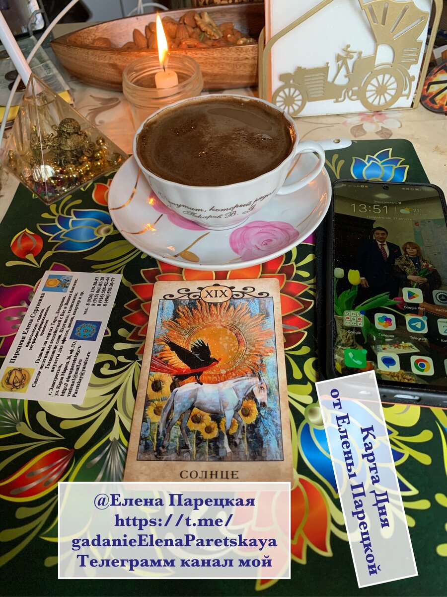 ♦️Карта Дня на сегодня СОЛНЦЕ 19 Старший Аркан Карт Таро Ворон, Стихия Огонь и Кофе с Благополучием во всем в Чашке Талисман Обереге! Эта Карта Дня даёт сегодня каждому состояние реализации себя в том статусе,как вы себя ощущаете и кто вы есть,в среде,в людях более уверено!Вы открыты для нового,что рождается в вас и для вас сегодня,на перспективу вашего будущего!Сегодня все ваши начинания будут успешны,и дадут благополучие во всем в будущем для вас!Энергия Солнца будет сопутствовать вам везде!Наслаждайтесь потенциалом наполняющим вас,позволяя этой энергии менять себя так,как вам предназначено.Успешны проекты, которые дадут результат необходимый вам далее.Приход денег из незапланированного источника.Дороги благополучны!Встречи сегодня дадут тот результат,который вам необходим и для вашей безопасности.Внимательней с теми, кто к вам негативны,не стоит с ними расслабляться. ©Елена Парецкая #картадня Благодарность за Карту Дня ( поддержка проекта) при желании можете присылать на карточк