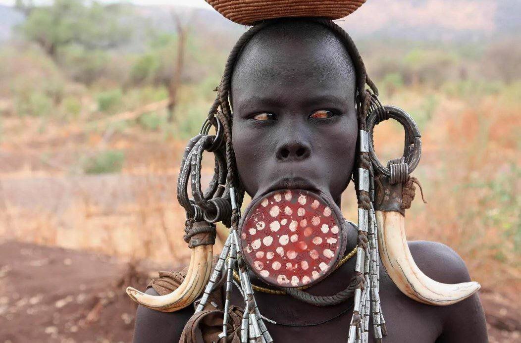 🟢Мужчины и женщины из племени мурси с ранних лет растягивают нижнюю губу, вставляя в нее все большие и большие пластины. 🟢Причины возникновения такого обычая до сих пор неясны окончательно. Согласно одной из версий, такое уродование женщин могло проводиться намеренно, чтобы кочевники-завоеватели не увозили с собой красавиц из этих племен. 🟢Некоторые исследователи уверяют, что есть прямая зависимость между размером диска и социальной значимостью девушки в племени. Чем важнее персона – тем сильнее растянута губа. 🟢Рекорд принадлежит эфиопской красотке, чья губа растянулась до 19 см в диаметре.
