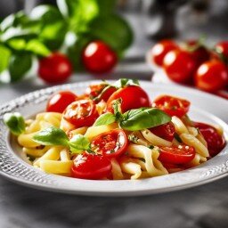Ингредиенты: – 250 грамм спагетти – 1 луковица – 3 зубчика чеснока – 400 грамм помидоров (черри) – 50 грамм базилика – оливковое масло – соль и перец по вкусу Приготовление: 1. Нарежьте лук и чеснок мелко, обжарьте на оливковом масле до золотистого цвета. 2. Добавьте нарезанные помидоры и тушите на среднем огне до мягкости. 3. Добавьте базилик, соль и перец, перемешайте. 4. Варите спагетти в подсоленной воде до готовности, согласно инструкции на упаковке. 5. Слейте воду и добавьте спагетти к соусу, перемешайте и подавайте горячим. Приятного аппетита! Название пасты: "Паста с помидорами и базиликом".