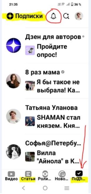 Я тут вчера поняла, что не все ещё знают, как найти свой список подписок. Удружили всем: авторам ввели новую монетизацию, которая зависит от внимания читателей, а от читателей спрятали основные инструменты поиска. Всё, как говорится, на благо человека. Спокойно! Сейчас разберёмся, где что искать. 1. В телефоне В верхней части экрана - колокольчик. Здесь я вижу уведомления о новых комментариях. Не знаю, так ли у вас, дорогие читатели, проверьте. И слово "Подписки" здесь говорит о том, что я в соответствующем разделе. 👇 👆 Теперь о том, что есть в самом низу экрана. У меня в телефоне установлен максимальный размер шрифта - поэтому слово "Подписки" влезло только частично. Для нас самое важное - что они справа с краю. Кликаем на этот значок - попадаем в подписки. Если вы хотите видеть текстовый формат публикаций, выбирайте значок "Статьи" - увидите ленту с текстами. 2. В компьютере или ноутбуке Смотрим в левую часть экрана. Неважно, где вы находитесь, - на каком-то канале или на главной с