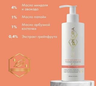 Нежное молочко интенсивно увлажняет кожу, защищая от сухости и шелушения, оставляя легкий экзотический аромат. Масло арбузной косточки - источник фосфолипидов и жирных кислот, эффективно смягчает и питает кожу. Масла авокадо и миндаля - защищают от преждевременного старения, восполняют недостаток влаги и улучшают текстуру кожи. Благодаря содержанию энзимов масло папайи мягко отшелушивает ороговевшие клетки эпидермиса, выравнивает тон и предупреждает возникновение пигментных пятен. Экстракт грейпфрута повышает прочность стенок сосудов и способствует выведению токсинов. Молочко быстро впитывается, не оставляя липкости после нанесения.