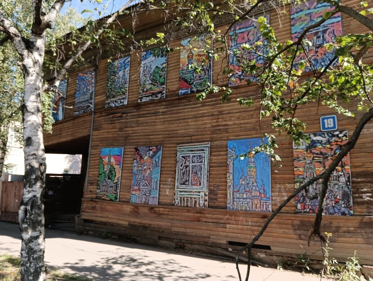 Прогуляйтесь по ул. Козлёнская до дома № 19. Это деревянный двухэтажный дом, который ждёт своей реставрации. А пока это час не пробил, на его окнах установили репродукции картин вологодского художника Олега Малинина из цикла «Сердце Вологды». Они издалека привлекут ваше внимание своей яркой цветовой гаммой. Вы без труда узнаете любимые достопримечательности вологжан.