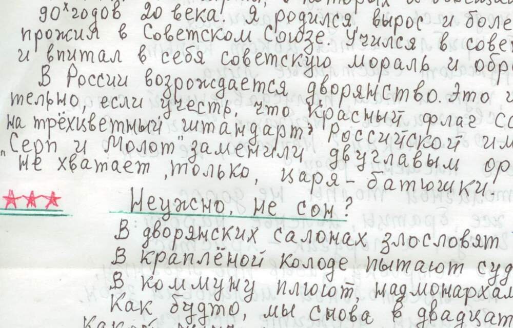 Я родился, вырос и более 50 лет прожил в СССР. Учился в советской школе и впитал в себя советскую мораль и образ жизни. В России возрождается дворянство. Это и неудивительно, если учесть, что красный флаг СССР поменяли на "трёхцветный штандарт" Российской империи, а серп и молот заменили двуглавым орлом. Не хватает только царя-батюшки.