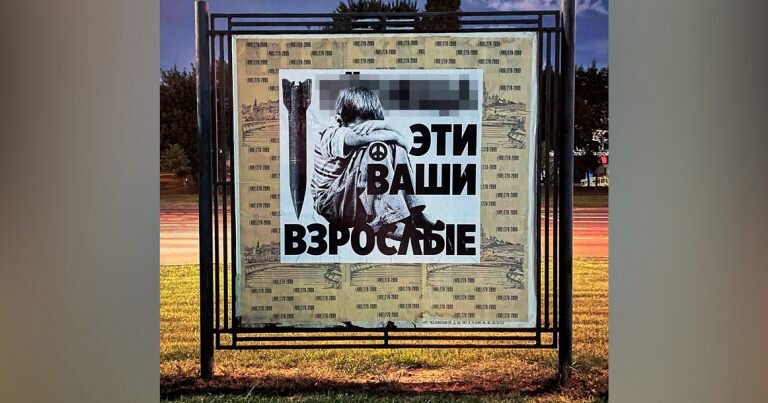 На улице Хачатуряна рядом с метро «Отрадное» появился плакат, на котором изображен плачущий ребенок рядом со снарядом и надписью «У***ща эти ваши взрослые». «Рисунок появился на улице Хачатуряна (изначально о нем рассказал в соцсетях уличный художник из Екатеринбурга BFMTH, настоящего имени автор не раскрывает), на рекламном щите неизвестный разместил плакат с ребенком и снарядом. Его заметил один из жителей района и сообщил в полицию, что у жилого дома висит реклама с “украинской символикой”. На место прибыл наряд, плакат сняли, проводится проверка, вывесившего рисунок ищут», — написал телеграм-канал «Осторожно, Москва». Работа стрит-артиста называется «Мысли ребенка под обстрелом», уточняет Sota. Что именно здесь можно назвать украинской символикой, не до конца понятно: ребенок может находиться под обстрелами с такими мыслями в любой стране мира. Больше никаких знаков на этой работе нет. Разве что значок пацифик на коленке мальчика. Фото: @ostorozhno_moskva
