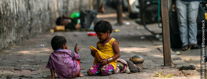 Дети в Индии очень открытые, сами заводят общение, любят знакомиться, задавать вопросы и фотографироваться. Сейчас количество детей в Индии в 2, 7 раза больше всего населения России. В этой фотоподборке можно взглянуть на лица детей из разных мест Индии, а также посмотреть, как они живут. Агра. Эти дети из мусульманской семьи живут в недостроенном здании. Окна нашего номера из гостиницы выходили ровно на крышу этого дома. Так дети из бедных семей едут в школу. А так учатся, парты есть не во всех классах. Удайпур. Этот мальчик помогает родителям, которые держат небольшую продовольственную лавку. Они очень любят позировать и фотографироваться. Джайпур. Это они присели не отдохнуть, они живут на этой улице вместе со своими родителями. Все время удивлялся, почему индийцы стараются одеваться тепло, а ноги оставляют босыми. Тоже самое делают и с детками. Мумбаи. Ребенок выбирает из мусора на железной дороге то, что можно принести домой. Трущобы Мумбаи. Ребенок с воздушным змеем среди мусора.