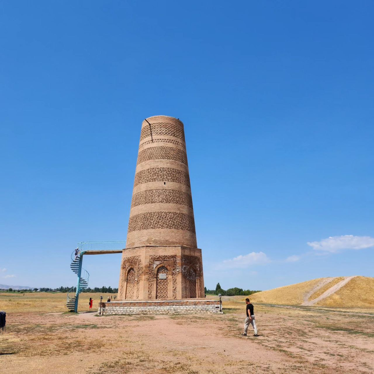 На этом месте раньше располагался город Баласагун. В XIV веке его разрушило землетрясение и от представленного на фото минарета остался только 21 м от 48, которые были изначально. Интересно, что внутри башни сохранилась оригинальная кладка. Этот минарет также использовался как защитная смотровая башня и в качестве маяка, т.к. здесь проходил Шёлковый путь. Со смотровой площадки открывается прекрасный вид.