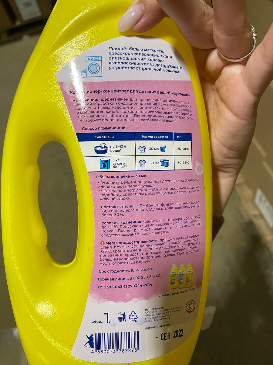 А начну я с отдела с бытовыми средствами, и первая новинка, которая меня встречает – это кондиционер-концентрат для тканей.