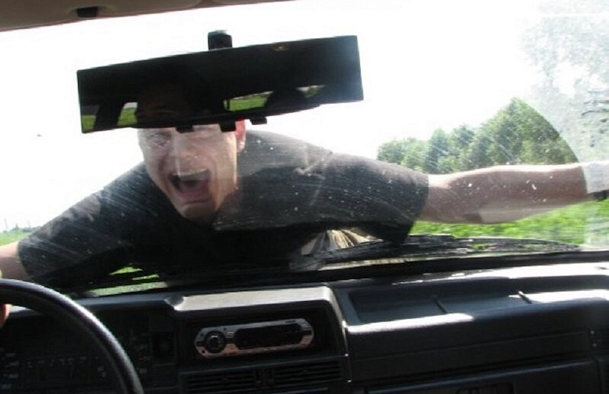 Катать на капоте стало трендом? В Междуреченске (Кемеровская область) супруги, находящиеся в процессе развода не поделили машину — в итоге жена прокатила мужа на капоте по центру города. Она неслась на большой скорости и врезалась в другой автомобиль. Бывшего возлюбленного в ходе ДТП практически порвало на части. Он экстренно доставлен в реанимацию. Женщина задержана. А в Москве водитель каршеринга 1,5 километра на капоте сотрудника Госавтоинспекции. Автоинспекторы тормознули Geely Coolray на Осташковской. В машине сидели парень и девушка — общаться со стражем порядка они не захотели. Водитель дал по газам, но инспектор не растерялся и запрыгнул на капот. Спустя полтора километра поездки водитель резко затормозил, и полицейский слетел на землю. Водитель поспешил скрыться. Машину вскоре нашли в Мытищах. Ещё больше новостей на сайте «Изнанка»