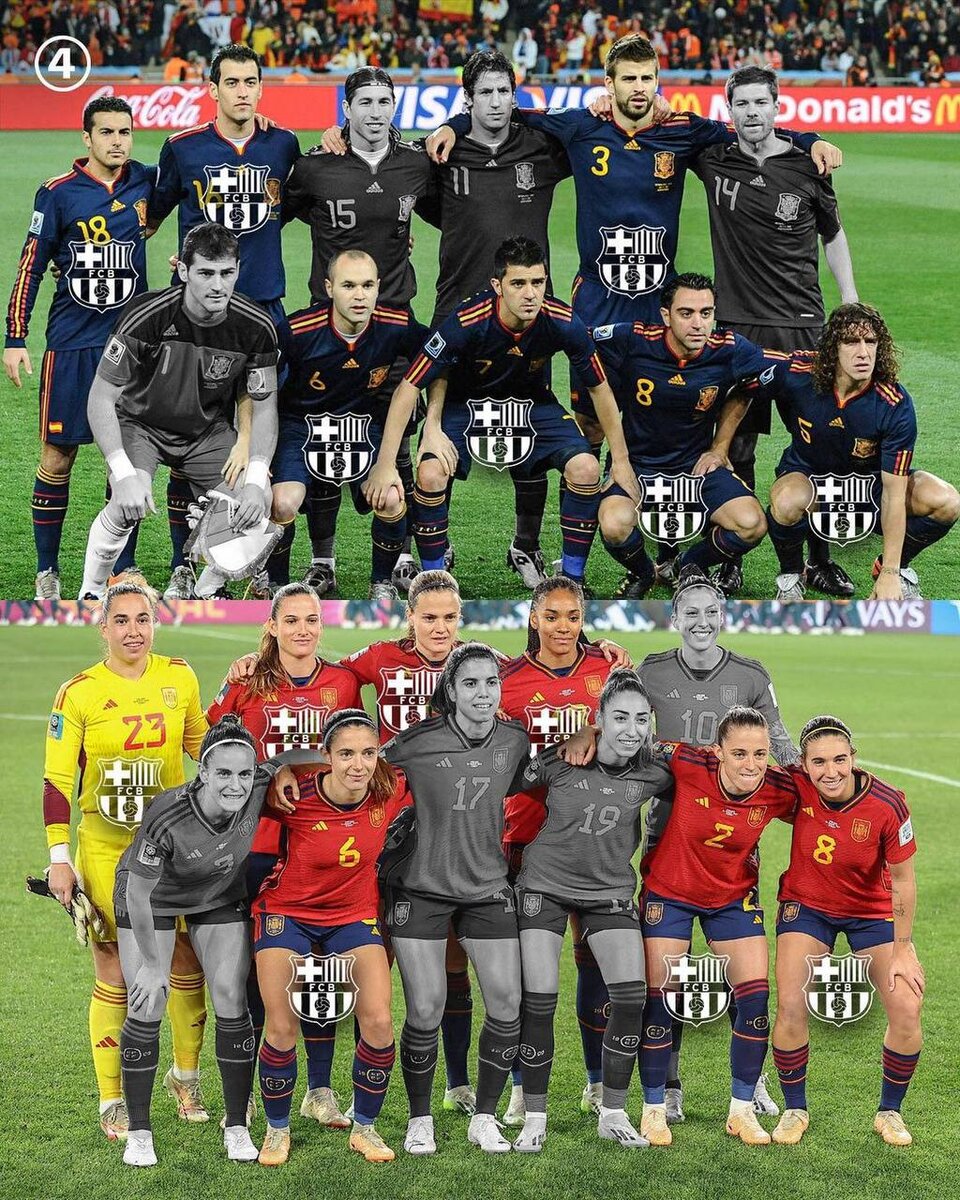 🧐 Интересный факт 🇪🇸 2010: Сборная Испании выиграла свой первый чемпионат мира среди мужчин с 7️⃣ игроками «Барселоны» в стартовом составе. 🇪🇸 2023: Сборная Испании выиграла свой первый чемпионат мира среди женщин с 7️⃣ игроками «Барселоны» в стартовом составе.