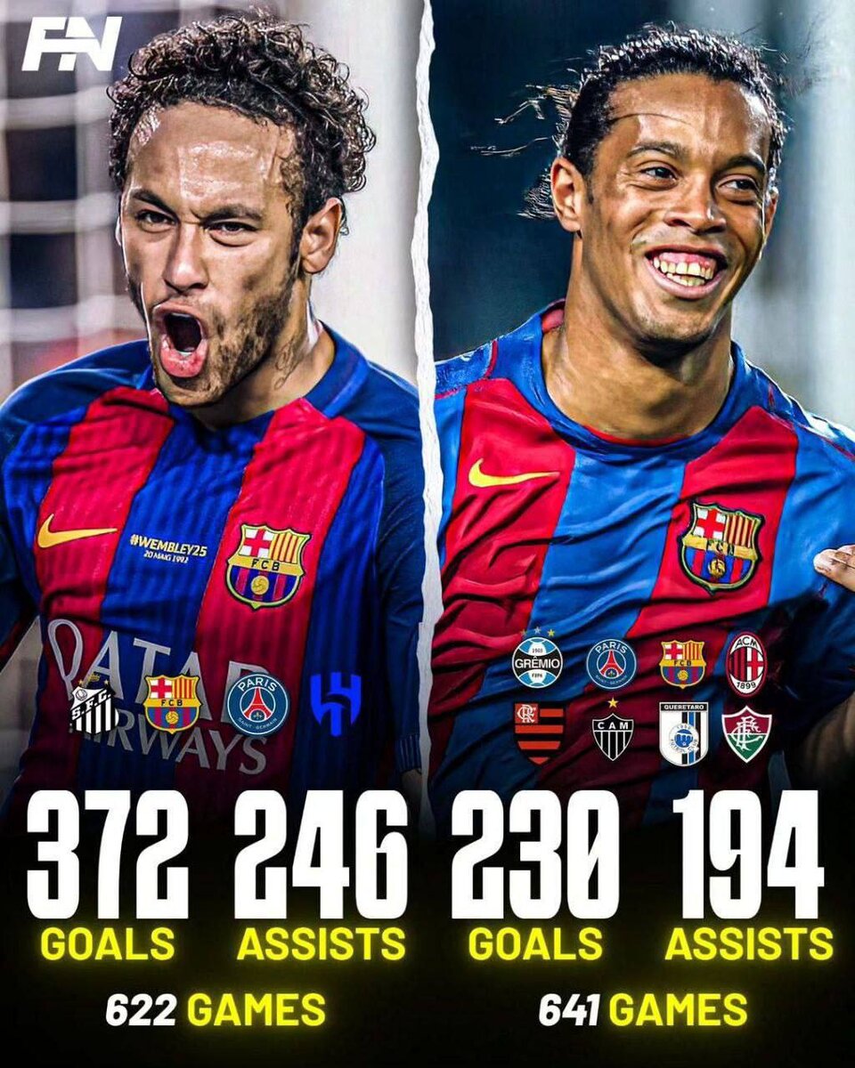 🇧🇷📊 Статистика Неймара и Роналдиньо за всю карьеру.