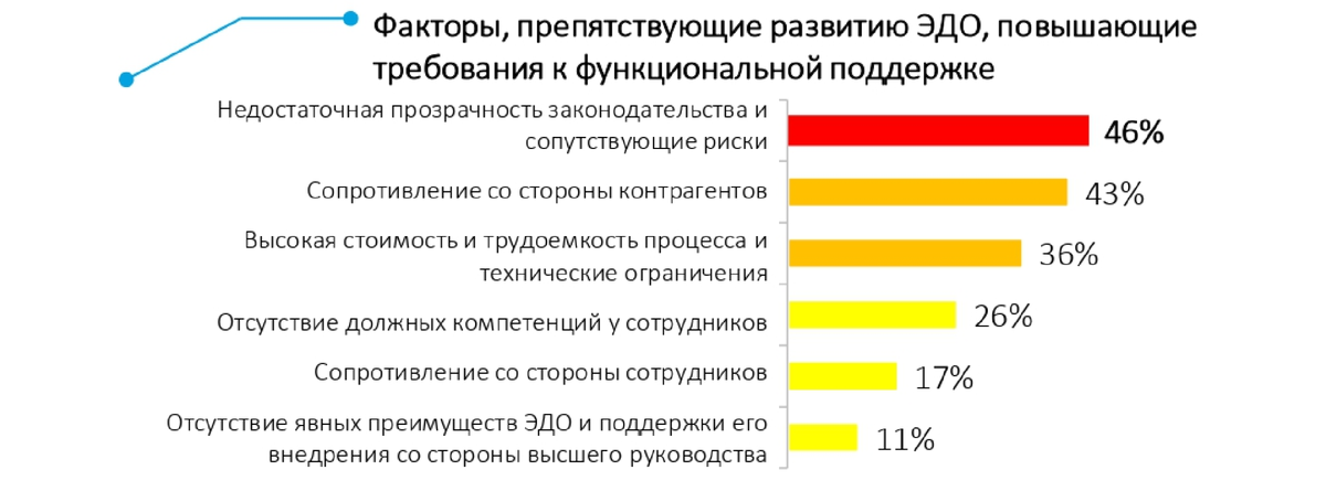 Аудиторско-консалтинговая фирма Deloitte провела опрос кадровых отделов российских компаний из разных сфер (медиа, технологии, розничная и оптовая торговля, нефтегазовая, энергетическая промышленность, металлургия), в результате которого были выявлены основные препятствия для развития ЭДО: