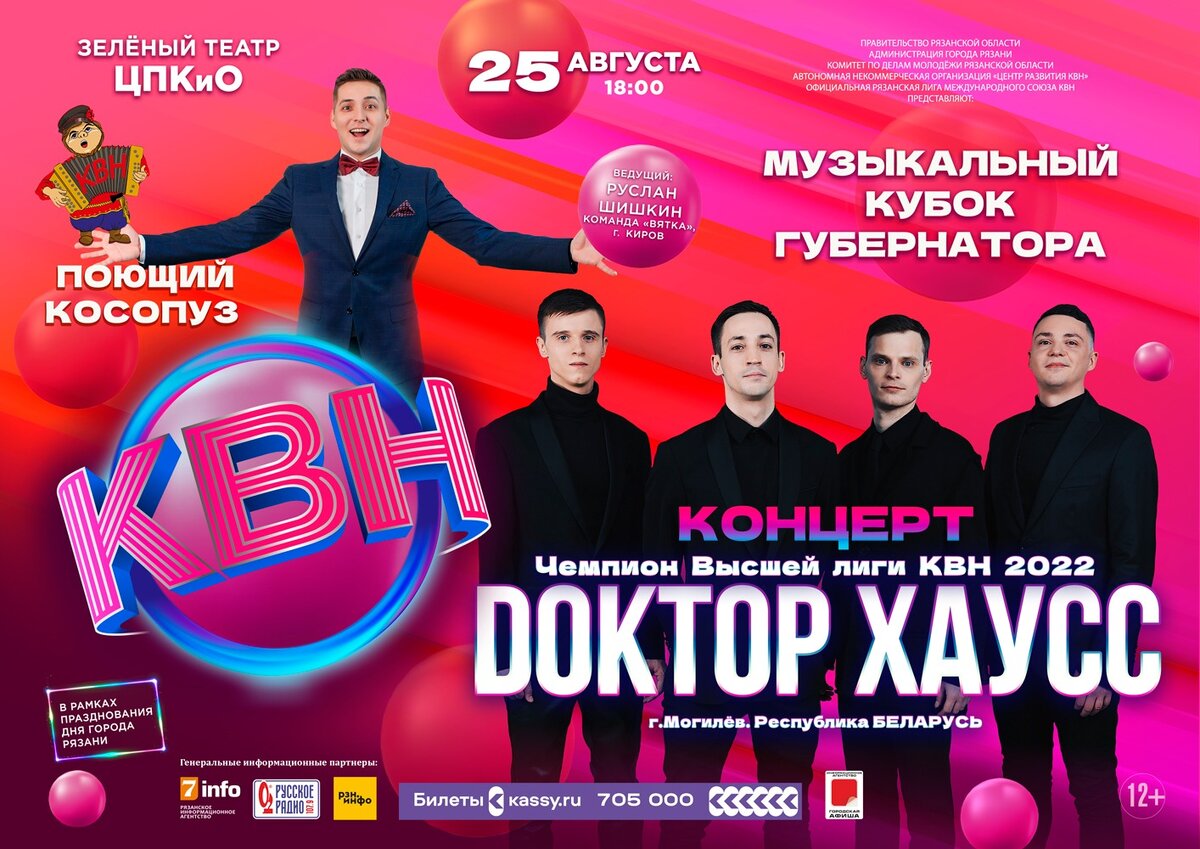Руслан Шишкин, чемпион Высшей лиги в составе команды КВН «Вятка», один из лучших ведущих игр КВН пригласил рязанцев на фестиваль 25 августа. В пятницу, 25 августа, в рамках празднования Дня города в Зеленом театре ЦПКиО состоится Музыкальный Кубок Губернатора Рязанской области «Поющий Косопуз 2023» (12+). Для участия в Кубке заявились 25 команд, в том числе четыре рязанских, три из Москвы, команды из Санкт-Петербурга, Севастополя, подмосковных городов. Ведущий мероприятия — известный актер и участник Высшей лиги Международного союза КВН Руслан Шишкин (команда КВН «Вятка»). Хэдлайнером фестиваля станет чемпион Высшей лиги КВН 2022 команда «Доктор Хаус» из Белоруссии. Недавно квнщики из Могилёва стали вторыми на Летнем Кубке КВН, прошедшем в Перми. У рязанцев есть возможность выиграть пригласительные на Музыкальный кубок Губернатора по КВН «Поющий Косопуз 2023». Розыгрыш проводится в официальной группе ВКонтакте информационного агентства 7info. Условия розыгрыша доступны по ссылке. Перех