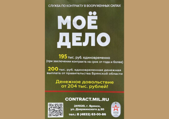 Отмечается, что Верховный Главнокомандующий Владимир Путин утвердил единовременную выплату 195 тысяч рублей, ещё 200 тысяч рублей — единовременная денежная выплата от правительства Брянской области и денежное довольствие от 204 тысяч рублей. Призывают на службу граждан от 18 до 60 с небольшим, отбираем по состоянию здоровья.