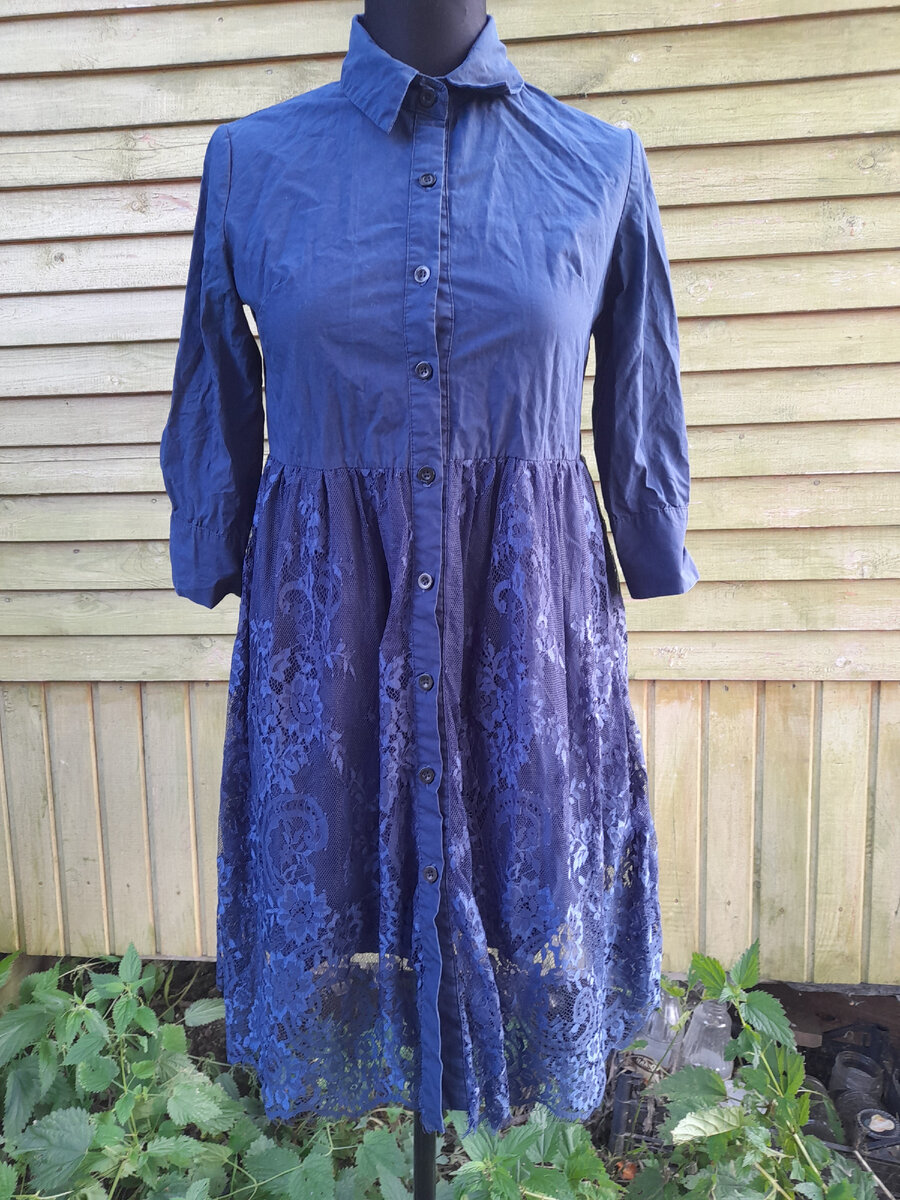 Меня тут спрашивали, что такое бесплатный секонд. Вот решила написать как раз статью на эту тему. Бесплатный секонд у нас - это склад вещевой помощи малоимущим ну и всем, кто хочет. Одни люди (и я часто тоже) приносят вещи, которые им не нужны, а другие эти вещи забирают. Получается что-то вроде обмена вещами. В основном, конечно, вещи там для работы в огороде, но есть и такие как сейчас говорят неактуальные, которые люди, непривередливые в моде, как я, с удовольствием забирают. Сразу скажу - бесплатные вещи я беру только для себя и своей семьи. Не продаю их. Если например за год не надела, или надела, но мне не понравились (не удобно) отдаю дальше. Благодаря этому складу я собрала коллекцию юбок, толстовок, шапок и даже пальто, чем я вам уже хвалилась. А теперь последние бомбические находки. Платье-рубашка. Мне чуть ниже колена. Мне очень идет такой фасон (а я и не знала😀). Юбка гипюр. Мне видется на осень с черными плотными колготками. Рукава укорачиваются. И в комплект к платьицу