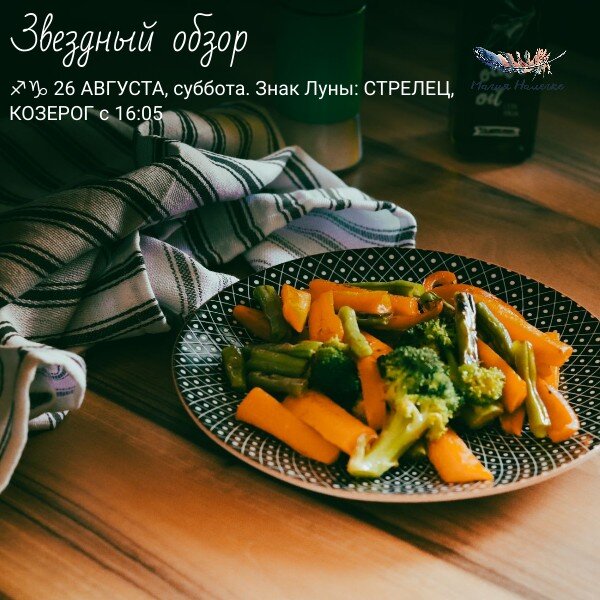 Наводки на новый день! ♐♑ 26 АВГУСТА, суббота. Знак Луны: СТРЕЛЕЦ, КОЗЕРОГ с 16:05 Тренды дня: Заряд бодрости и приятностей пятницы остаются в пятнице. В субботе много энергий, но она от квадратов. А значит - не всем по вкусу. Ведущий нынче тау- квадрат Луна- Нептун- Сатурн будет подкидывать всплески напряжения от событийности во вне. И вызвать у нас недовольство и непонимание. Первая половина дня агрессивна, мы можем быстро взяться за важное дело, однако импульсивность и неумение сконцентрироваться на важном могут помешают в получить тот результат, на который рассчитывали. Аккуратничаем в общении, за рулем, с острыми предметами. Конфликты лучше обходить стороной. Важные и сложные дела на сегодня лучше не планировать. Как говорится, есть возможность постоять- посидите, при возможности посидеть- полежите, а уж если есть возможность полежать- то по спать сами святые магистры благословили это дело. Энергии будут нас учить стабилизироваться и осмыслять свои эмоциональные бури. Ищем стаб