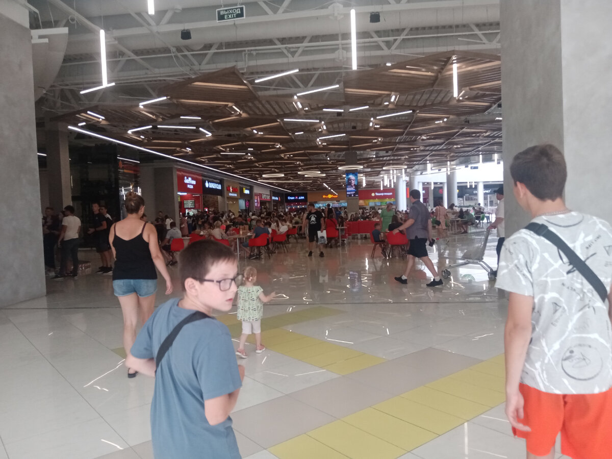 Но перед тем, как начать развлекаться, нужно было непременно подкрепиться) Куча ресторанчиков фастфуда и не только) И народу не протолкнуться. Еле нашли столик, освободился пока стояли в очереди за заказом. Это детские⤴⤴⤴ А я себе взяла острый бургер с рыбкой (очень понравился) И двинули для начала в океанариум. Хоть старший и очень рвался побыстрее на аттракционы, но юбилей - то у младшего) Кто сегодня пуп земли?))) Стоимость билета 800 рублей с человека. За съемку ее 150р и надевают яркий браслетик (свет на камере и вспышка запрещена, чтобы питомцы не чувствовали дискомфорт) Никитке очень понравилось. Даже больше, чем аттракционы. Было даже представление с морскими котиками (есть видео, хотела подгрузить перед статьей, но в дзене опять что-то не так, обрабатываются с раннего утра и никак не обработаются, написала в поддержку) Очень много различных видов рыб, черепахи всякие, акулы, скаты, пингвины... Никита увидел в какие огромные размеры могут вырастать караси и их сородичи, котор