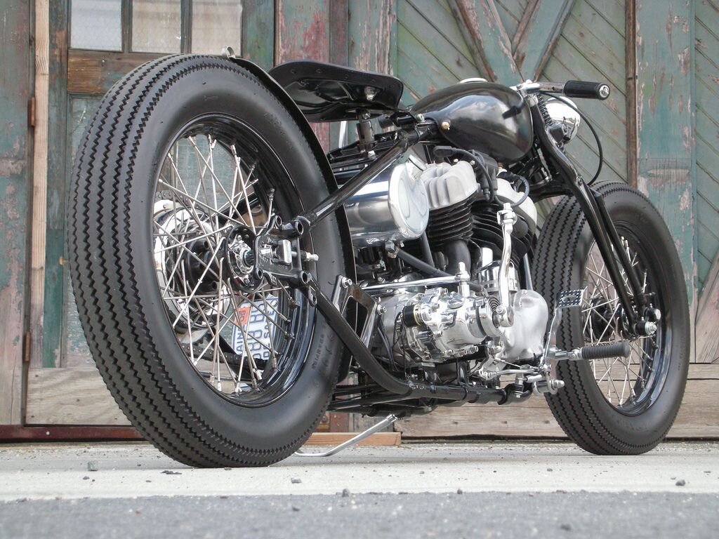 А вообще, в принципе, боббер ассоциируется с толстыми бубликами спереди и сзади потому, что мотоциклы, служившие первоначальными донорами, их уже имели. Ну не было на Западе "заготовок" для бобберов с узкими колесами, чтобы без устали клепать из них "мотоциклы для настоящих мужиков".