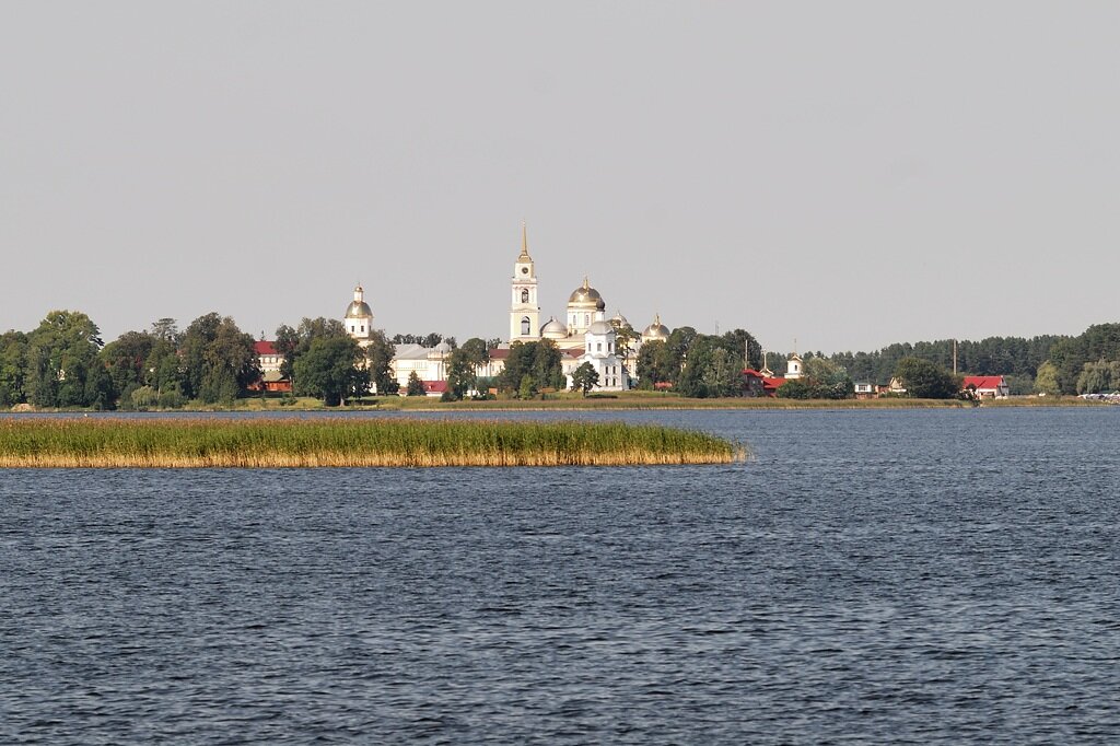 Нило-Столобенская пустынь. Каноничное фото с колокольни. Есть во множестве вариантов, поэтому отношение - снял и снял. Идем дальше. Храм Нила Столобенского и Архиерейская пристань, видная в воротах храма. Переходим в сам Осташков: Место немного похоже на подворье монастыря, но на самом деле это такой угол города, где на небольшой площадке сгрудились два собора. Выдержка из Викимапии: "В конце XVII века Осташков превратился в большой город, в котором быстро росла численность населения, развивалась торговля. Во многих городах России во второй половине XVII века развитие торговли и строительства происходило параллельно. Разделение Осташкова на две слободы было к тому же чисто местной причиной, способствовавшей оживлению строительства. И патриарх и Иосифо-Волоколамский монастырь назначали в городские соборы своих настоятелей, внедрявших тут вполне определенные вкусы. Сочетание этих причин способствовало тому, что в Монастырской слободе в 1677 году начали строить Воскресенский собор