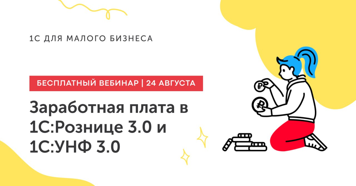 24 августа бесплатный вебинар «Заработная плата в 1С:Рознице 3.0 и 1С:УНФ 3.0»