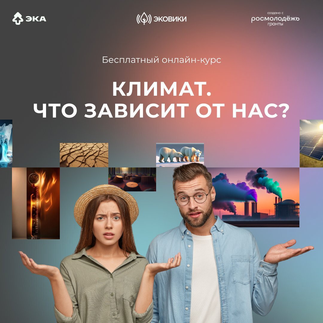Открываем регистрацию на новый онлайн-курс «Климат сегодня. Что зависит от нас?» 32 урока расскажут о причинах и последствиях климатических изменений. Участники курса узнают, почему климат на планете стал быстро меняться, как власти, бизнес и ученые решают эту проблему и какие процессы уже невозможно остановить. Мы не будем томить вас скучной теорией, сложными понятиями и дискуссиями ученых и политиков. Мы хотим опровергнуть мифы, созданные климатическими скептиками. Правда ли, что климат на планете менялся всегда и человек здесь ни при чем? Зачем останавливать глобальное потепление, ведь скоро Россия превратится в тропики? Что будет, если мы все перейдем на растительное питание? Ответы на эти популярные вопросы будут в нашем курсе. Все уроки будут представлены как в текстовом, так и в видеоформате. Их можно будет проходить в любое удобное время в комфортном темпе. По итогам прохождения курса все участники получат дипломы от Движения ЭКА. Курс создан при поддержке Федерального аг