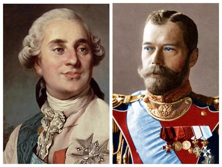 Людовик XVI, французский король 1774-1792, был свергнут с трона революцией. Отдельные эпизоды и черты его жизни удивительно напоминали то, что позднее происходило с русским царём Николаем II (1894-1917). Вплоть до свержения и последующей судьбы самого Николая II.