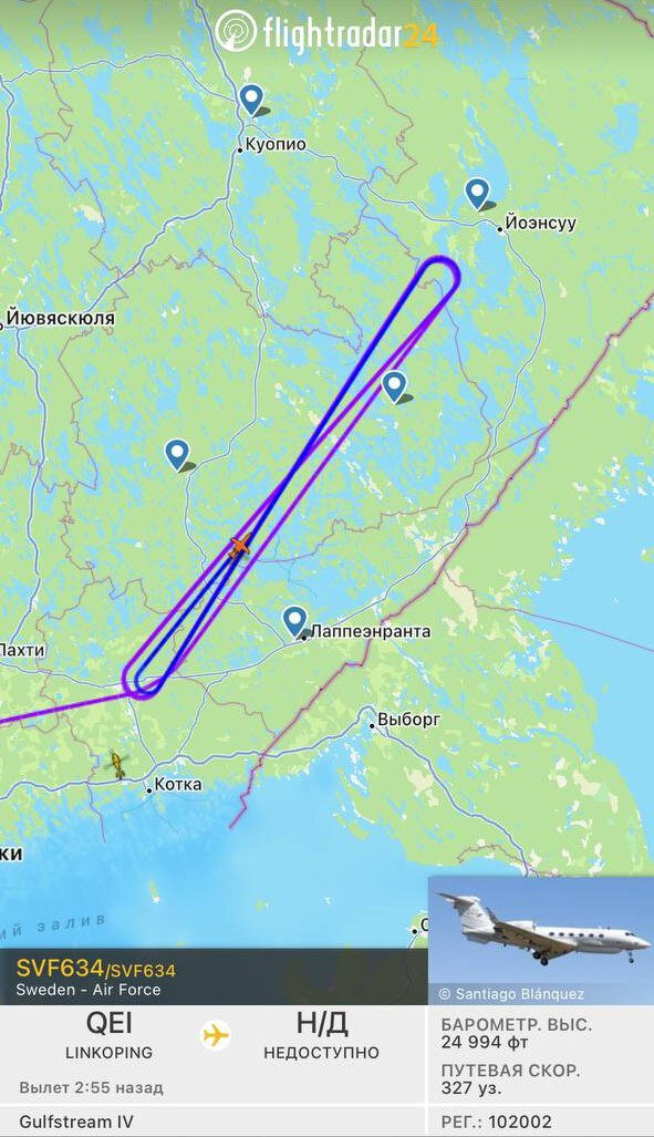 Самолет военно-воздушных сил Швеции утром нарезал круги у границы с Россией в Финляндии, всего в 200 километрах от Петербурга, следует из данных Flightradar24. Читайте на "Фонтанке"