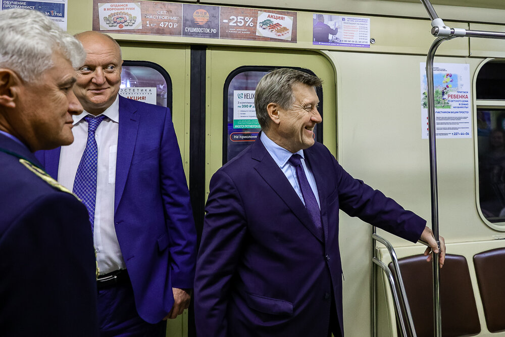 «Вообще режим работы предусматривает уплотнение, то есть уменьшение промежутка между поездами. Но он не бесконечен. То есть нельзя доводить как в Москве, до 30 секунд. Это связано тоже и с количеством поездов, и с режимом работы в целом нашей линии. Но стоит заметить, что мы сюда ехали не на 4-х вагонном поезде, а на 5-ти. То есть обеспечить движение такого поезда у нас возможность есть. И на сегодняшний день у нас есть 4 таких состава. Мы планируем вообще вносить серьезные изменения в развитие метрополитена, в наши вагоны, вагонный парк и полностью переходить на 5-ти вагонные поезда, что, разумеется, потребует определённых вложений. Кроме того, я хочу напомнить, что у нас есть такая очень серьезная проблема: износ и окончание ресурса вагонов, изготовленных в 80-е годы, которые в 2030 году должны будут быть выведены из эксплуатации. Соответственно, должна быть проведена их замена. Поэтому вот такие серьезные задачи дальше нам предстоит решать», ― рассказал Анатолий Локоть.